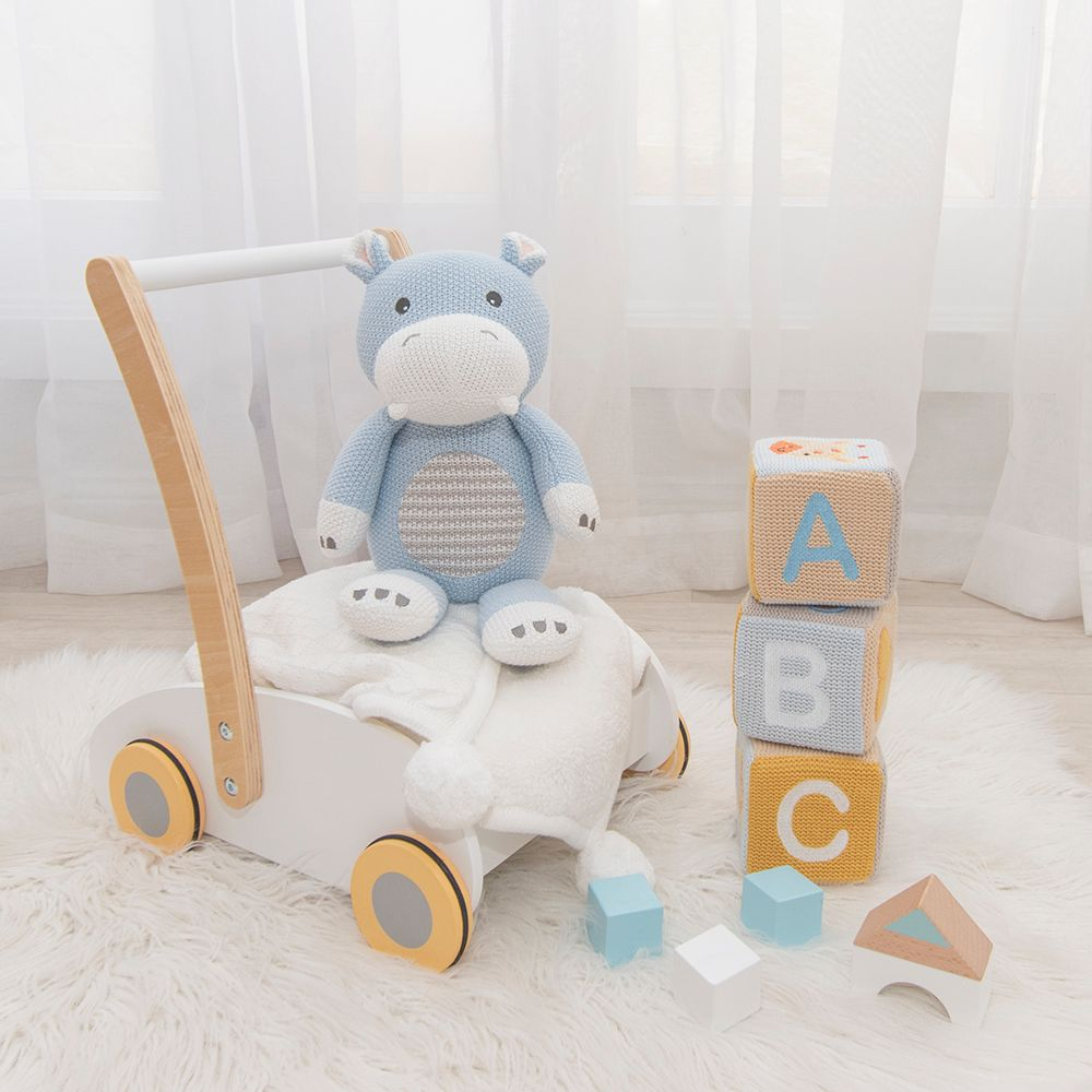Delight your little one with the sweet Henry the Hippo knitted toy. Made from 100% cotton in a pearl knit finish, Henry features a soft jiggling rattle to keep the baby entertained when out and about. Irresistibly cute and adorable, Henry the Hippo features exquisite detailing that is sure to make her treasured for years to come.
